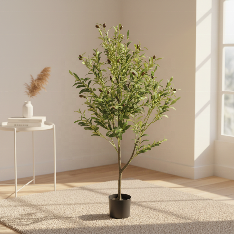 Nouvel Arrivage Direct Usine Arbre d'Olivier Artificiel en Soie Tissu 120 cm Plante d'Olivier Verte en Pot
