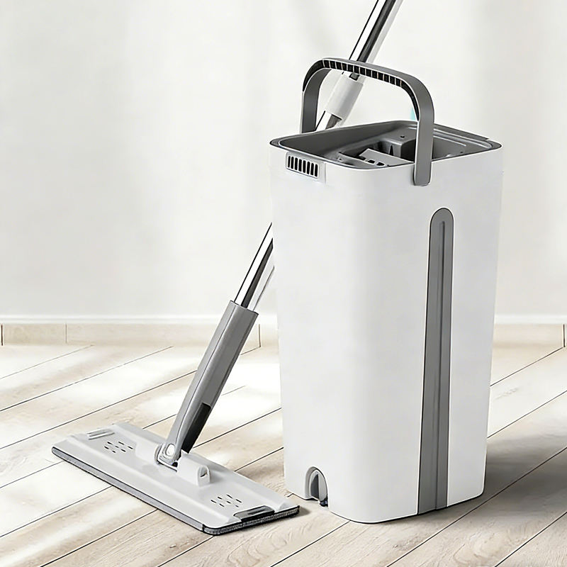 Nouvelle Arrivée : Serpillère Plate Magique Humide et Sèche avec Seau, en Microfibre, Manche en Acier Inoxydable, Fabrication Usine, pour un Nettoyage Facile