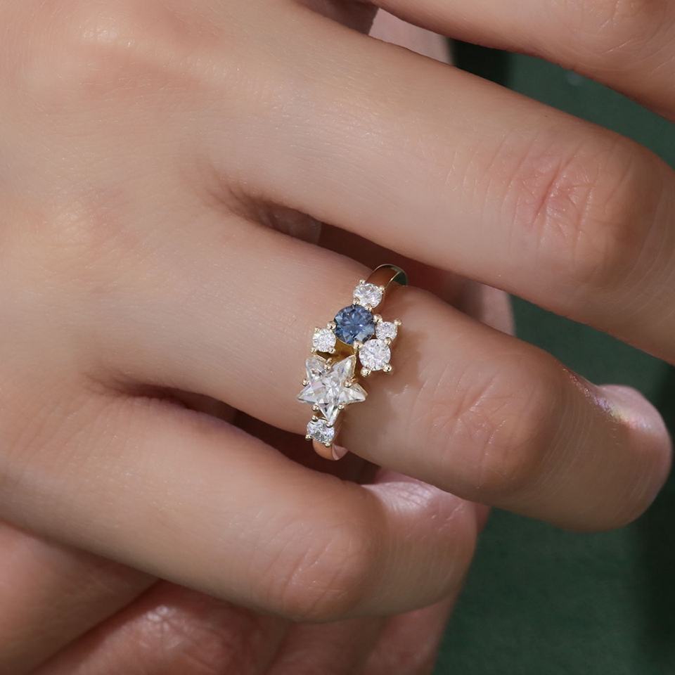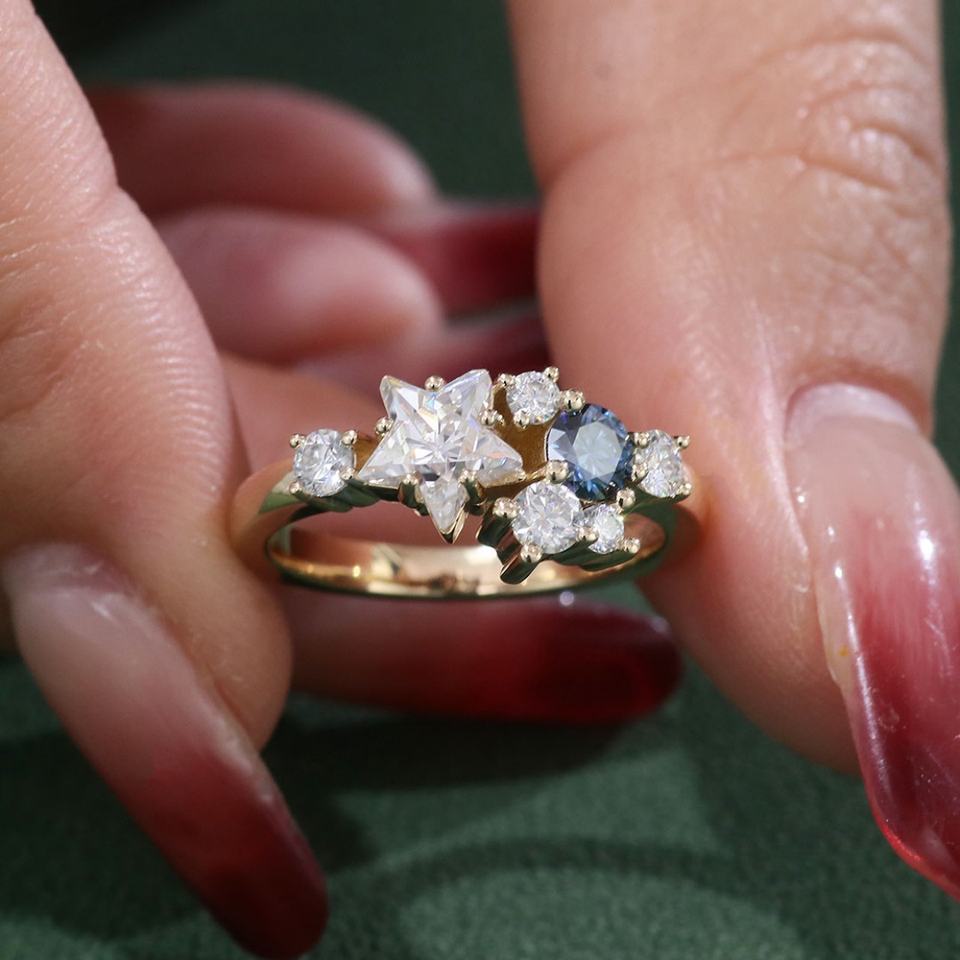 Nouveauté, prix d'usine, alliance en argent sterling 925, mignonne. Bague de fiançailles en moissanite taille étoile certifiée D VVS