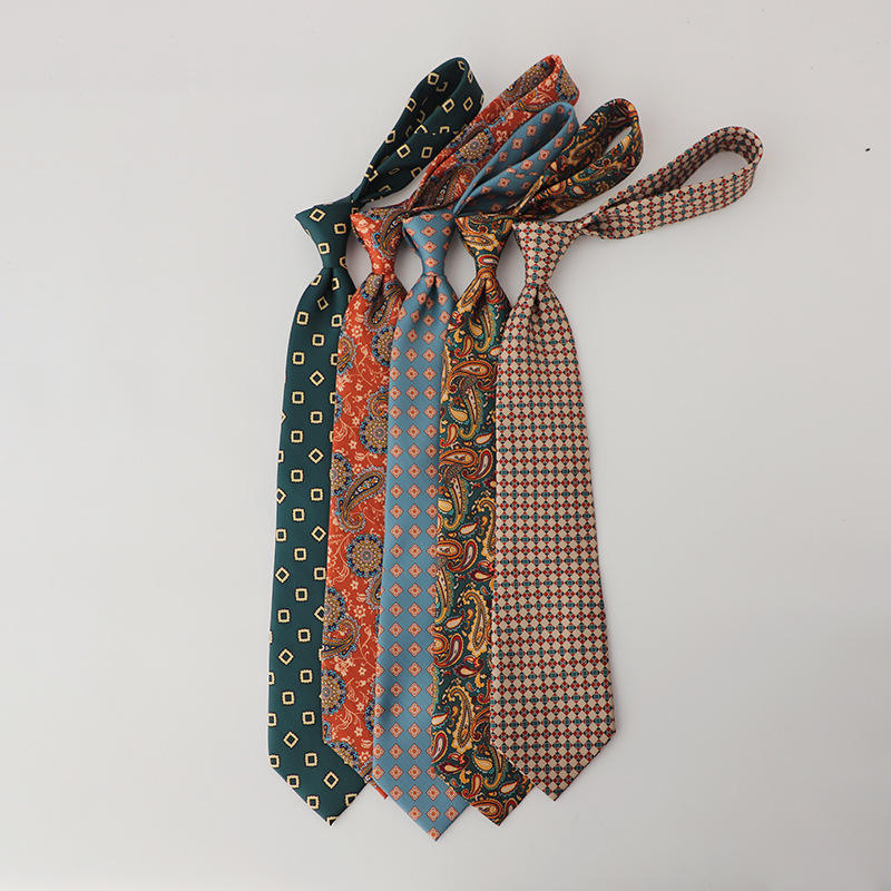 Nouvelle Arrivée Stock d'Usine Vente en Gros Rétro 9CM Imprimé Bleu Clair Vert Foncé en Polyester Cravate pour Hommes