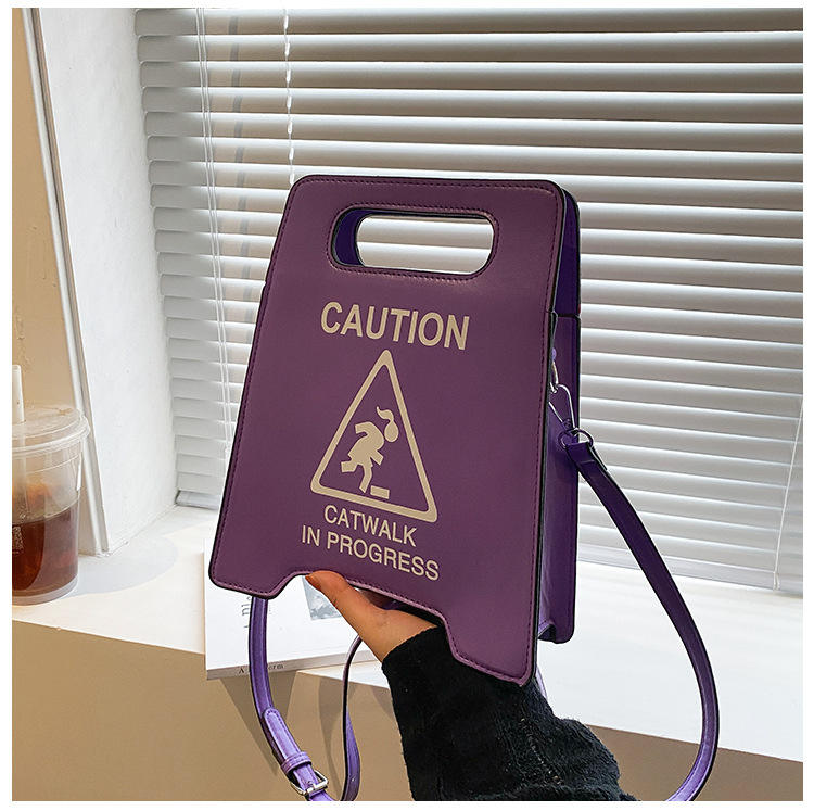Sac à bandoulière carré en cuir PU créatif personnalisé à la mode Sac à main pour femmes hip-hop Stop Interdit Signe Fête Vacances
