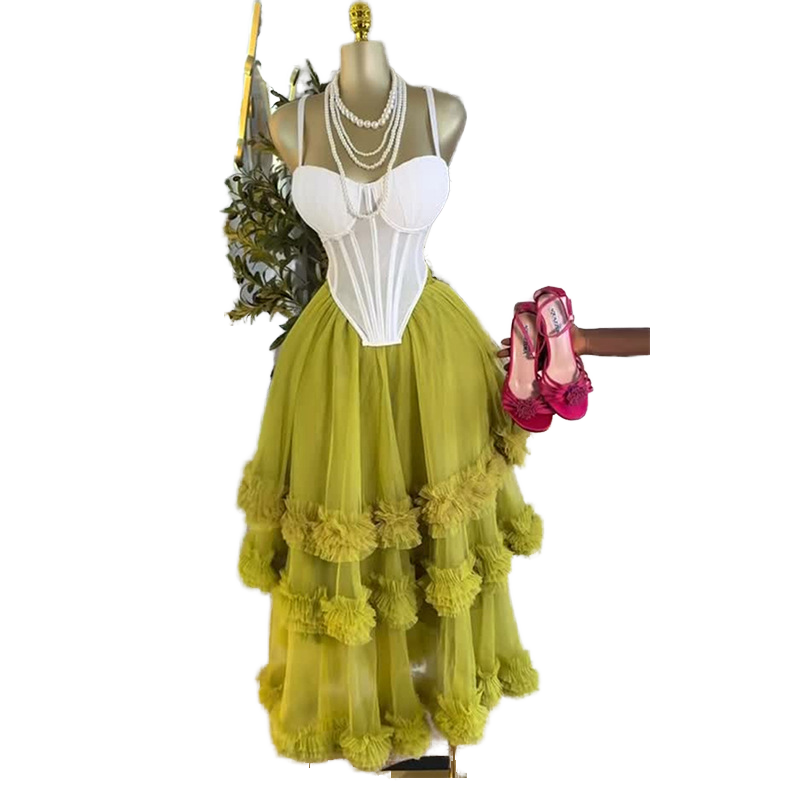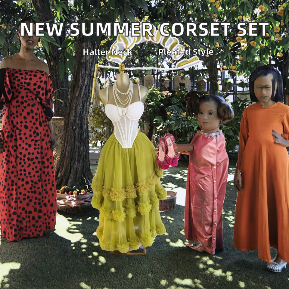Nouvelle Collection Mode Été Ensemble 2 Pièces : Top Corset Irrégulier et Jupe Longue à Volants Style Urbain Décontracté Écologique