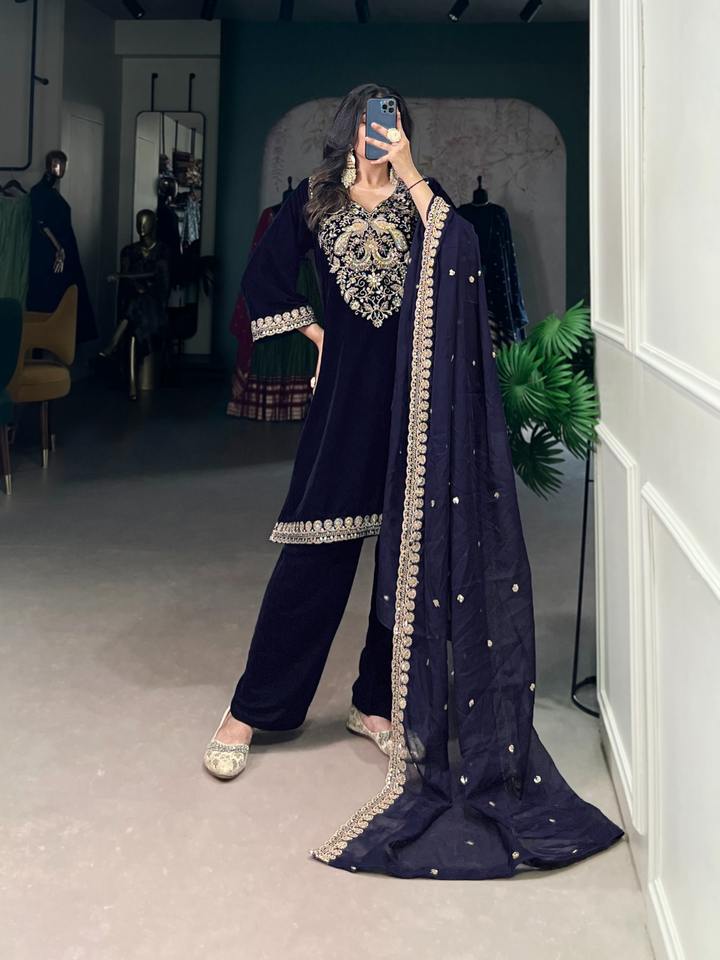 Nom du produit:Velours Designer avec paillettes et fil broderie travail Salwar costume