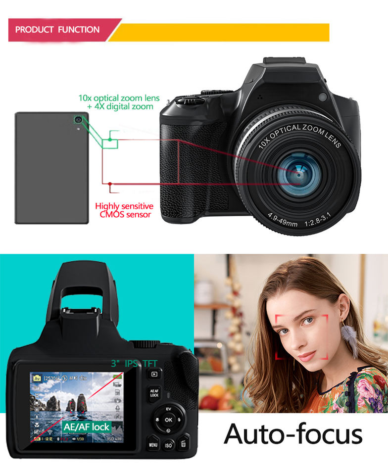Henzhen iCar D05 APN 2400Wpx 3,0" IPS zoom optique 10x 4K(2880×2160@24fps) NP120 Li-ion 1400mAh 1 unité