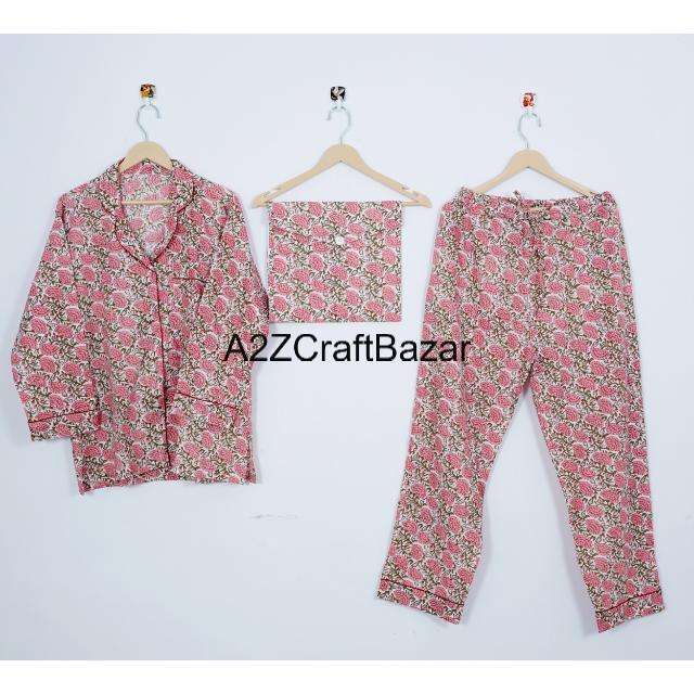 Nouvelle arrivée directe de l'exportateur indien ensemble de pyjama en coton à fleurs d'été pour femmes pantalon chemise à taille élastique de différentes tailles