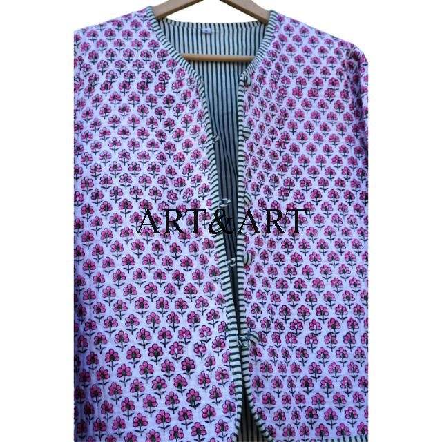 Nouveauté Manteau matelassé à col en V réversible respirant en coton biologique 100% fabriqué à la main en Inde pour femmes, écologique, décontracté pour le bureau
