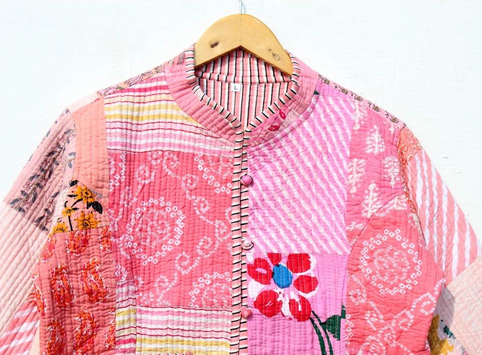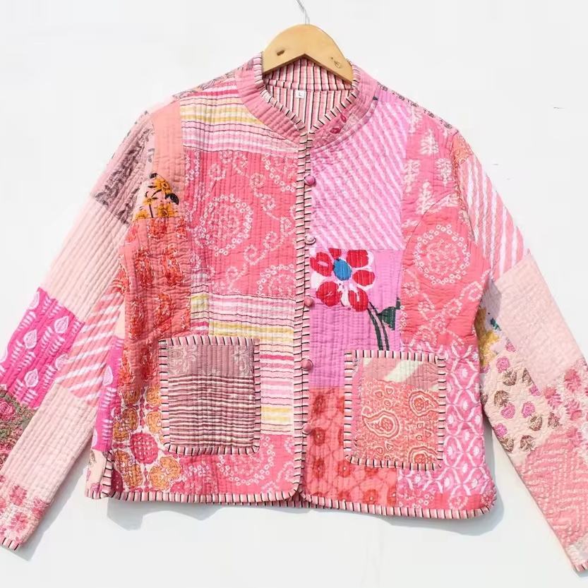 Nouvel arrivage de manteaux matelassés à imprimé floral avec patchwork, vestes indiennes faites à la main, veste matelassée bohème pour femmes