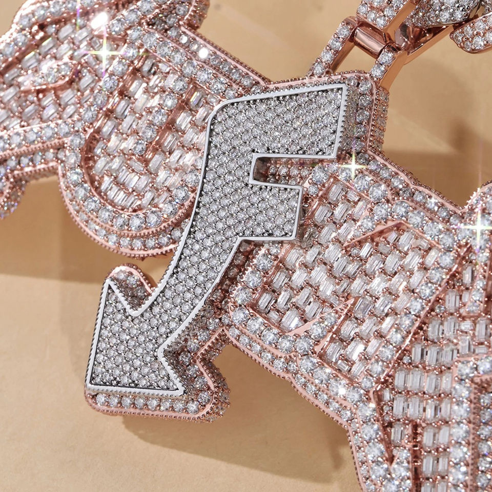 Nouveauté Pendentif en argent sterling 925 entièrement serti de diamants de moissanite Hip Hop pour homme ou femme avec clarté VVS améliorée