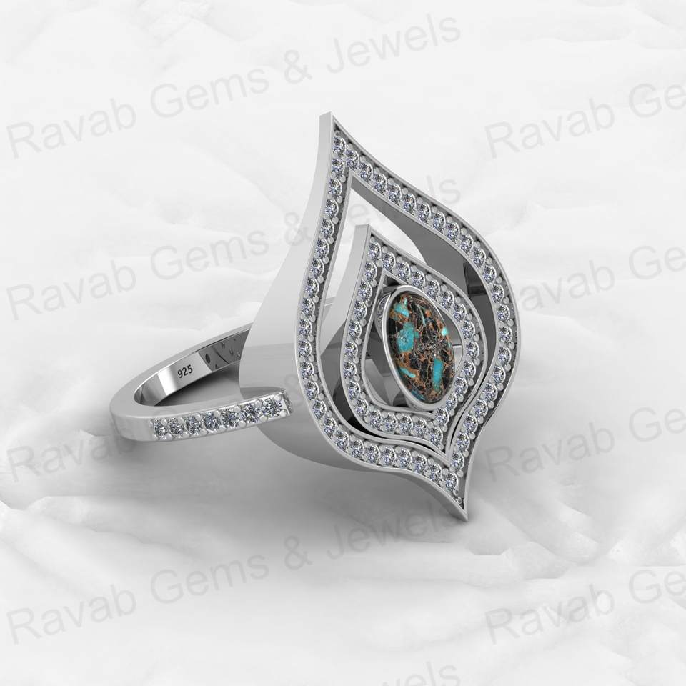 Product Name:Gemstone 925 Sterling Silver Peridot Cooper Turquoise Rings