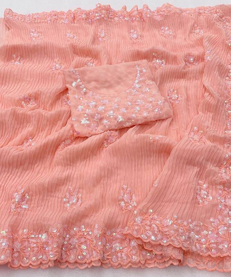 Nouvelle arrivée georgette à volants travail avec pierre travail saree avec chemisier non cousu prix de gros fabrication vêtement ethnique ApparelGarment