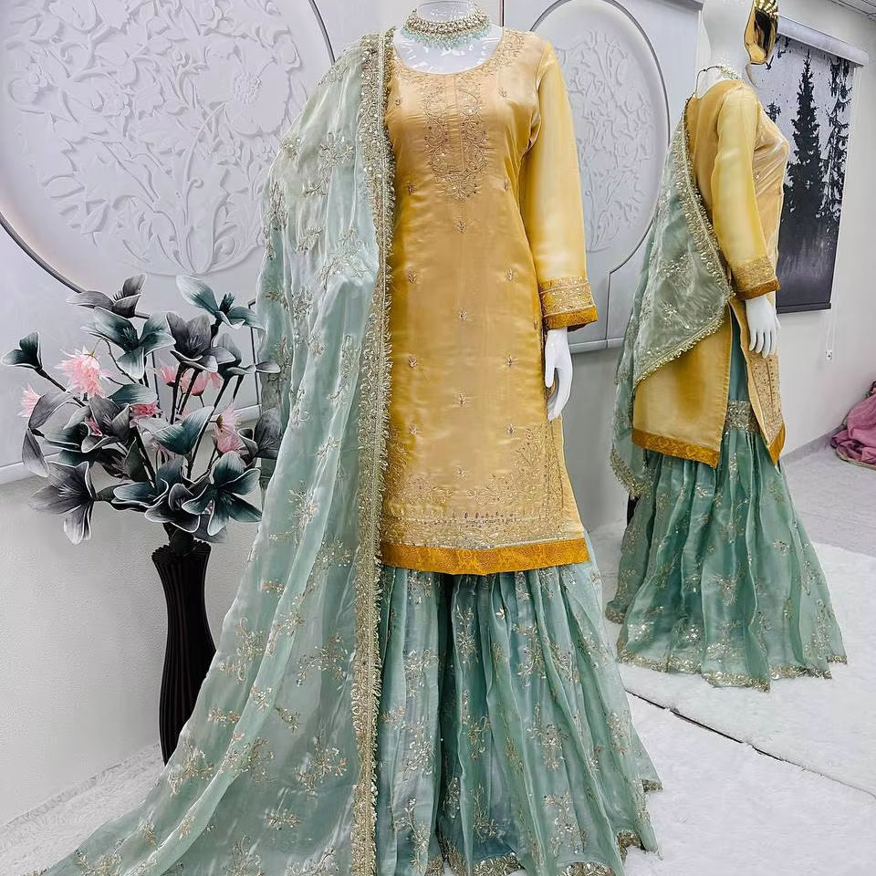 Collection de costumes Gharara avec séquence de broderie pour les femmes, vêtements de fête et de mariage, nouvel arrivage