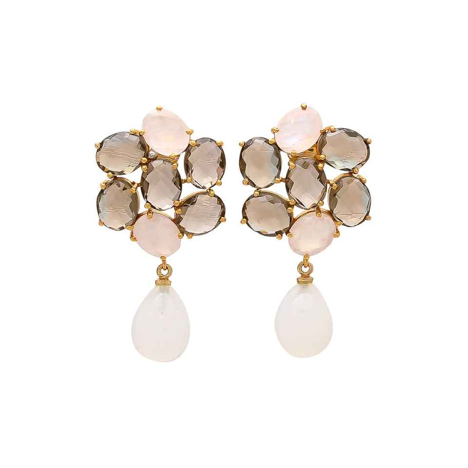 Nouvelle arrivée plaqué or longues boucles d'oreilles pendantes conception de fleurs couleurs uniques boucles d'oreilles en pierres précieuses par Gemstone