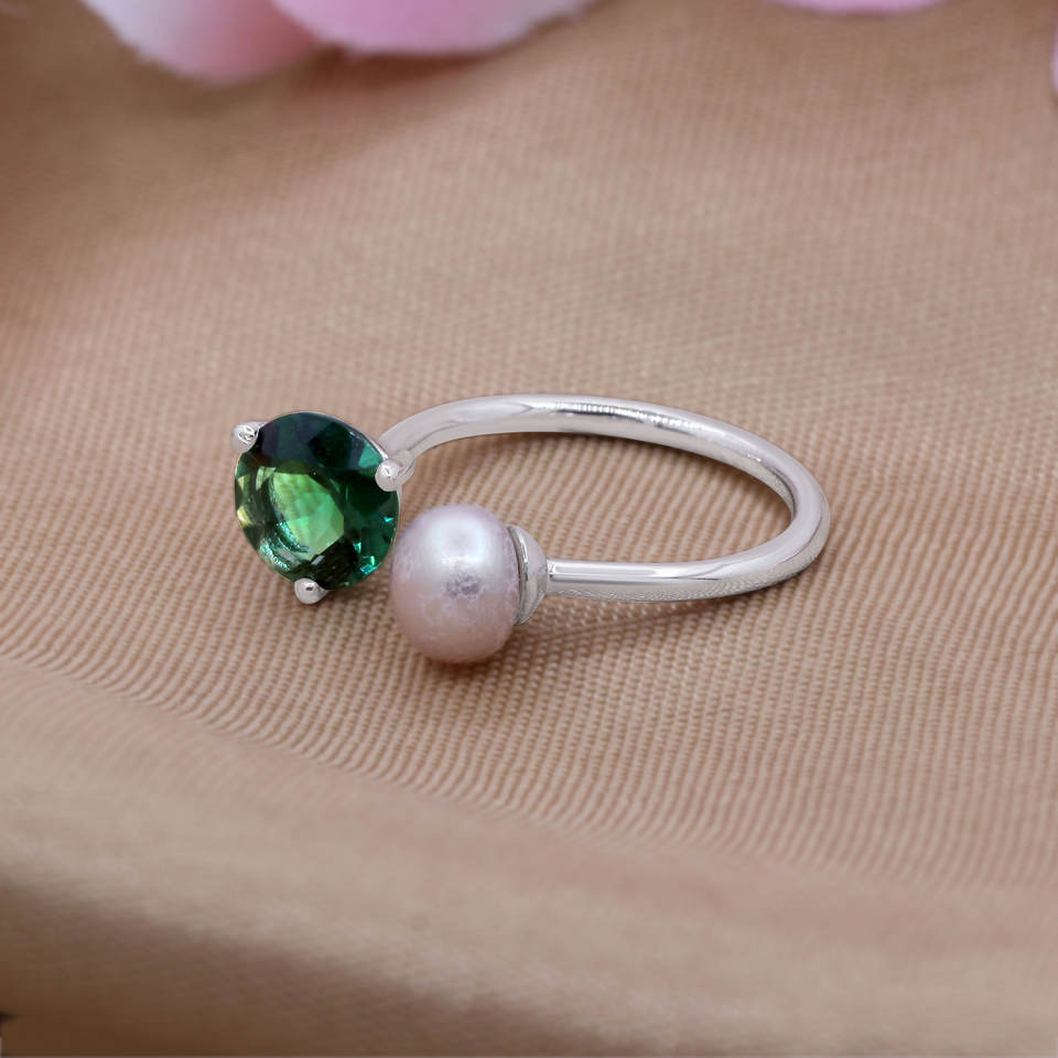Product Name:New Arrival Green Hydro And Pearl Gemstone Prong Setting Ring