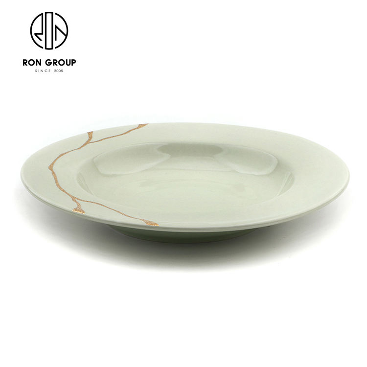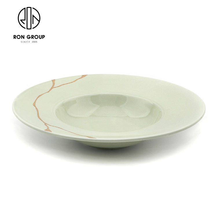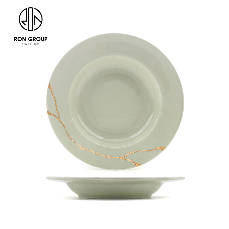 Nouvel arrivage de vaisselle ronde en porcelaine verte 10/12 pouces pour le stockage des aliments à dessert pour les couverts de dîner commerciaux de restaurant d'hôtel