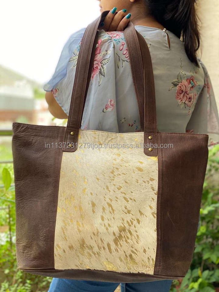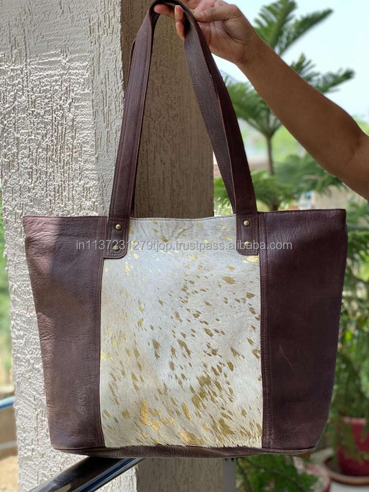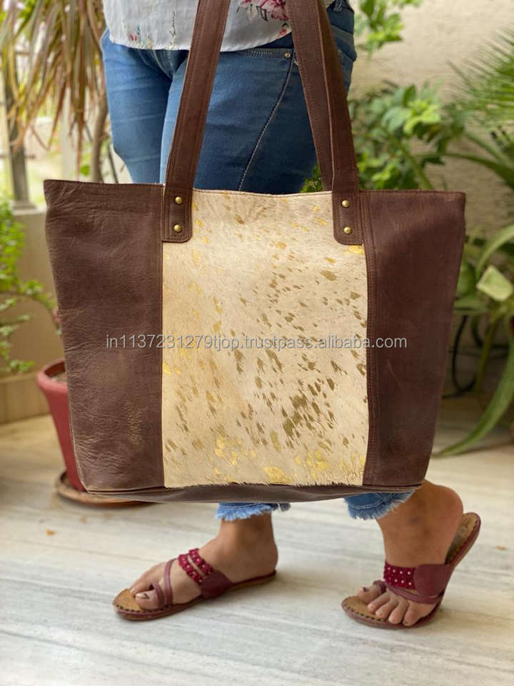 Sac fourre-tout occidental en cuir métallisé cheveux sur peau de vache sac à bandoulière de vente à chaud sac à provisions de luxe élégant pour les femmes