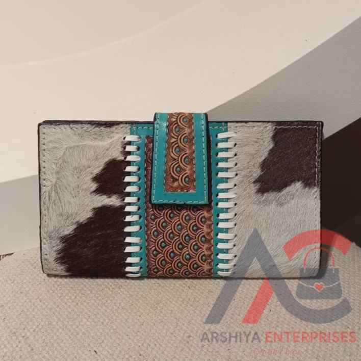 Designer Tooled Fur Leather Clutch