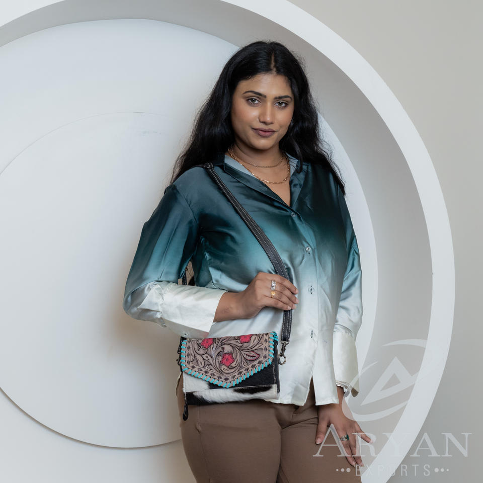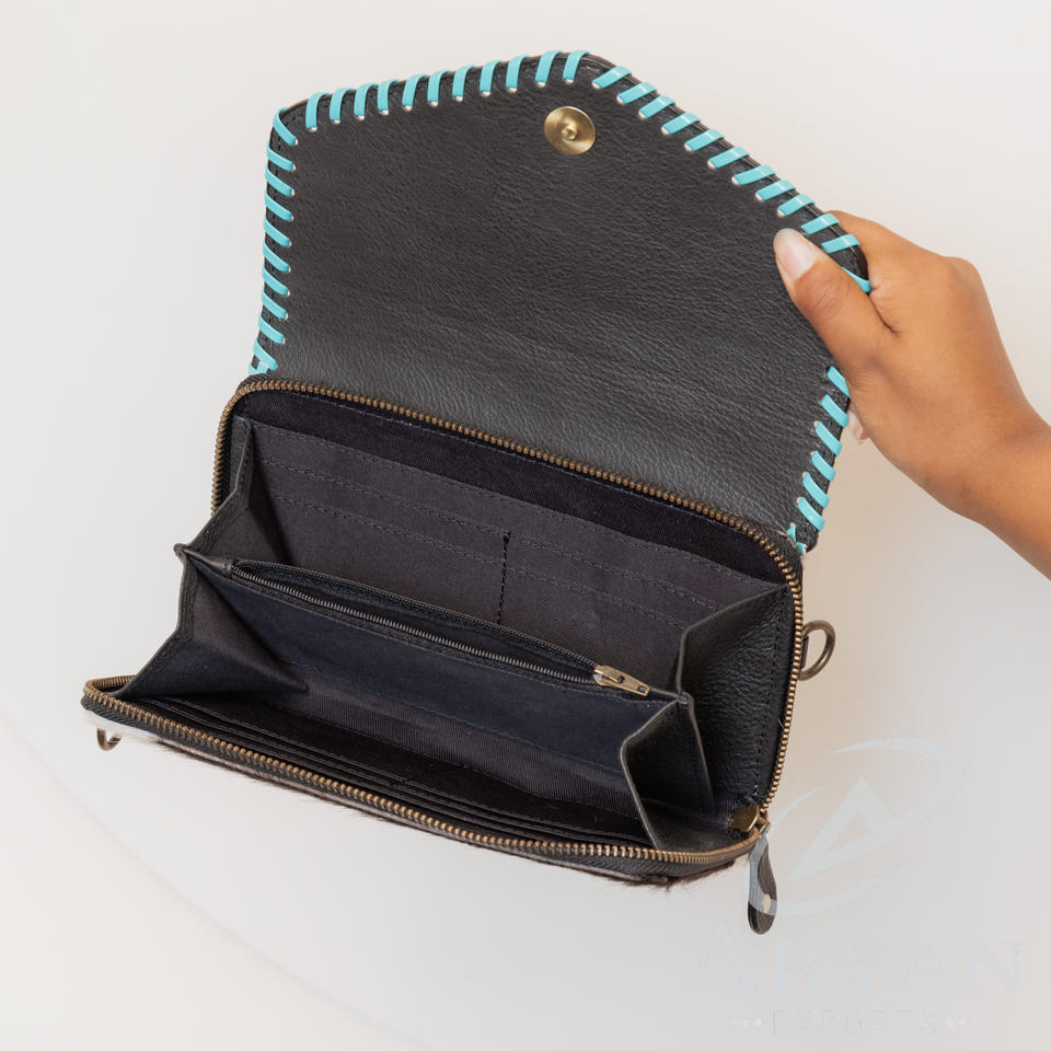 Pochette portefeuille en cuir sculpté usiné à la main étui de téléphone élégant en cuir de vachette couleur turquoise portefeuilles pour femmes nouvel arrivage