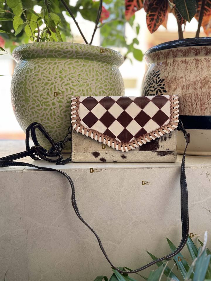 New Arrival Hand Tooled Carving Leather Clutch Phone Case Stylish Cowhide Fur Leather Brown Checks Pattern Wallets for Women