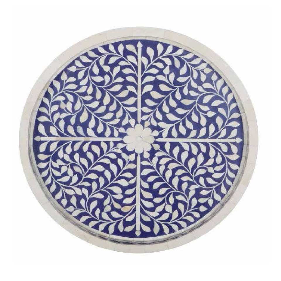 Nouvel arrivage : Plateau de service artisanal à motifs géométriques, incrustation osseuse marron et blanche, origine Inde, plateau de petit-déjeuner polyvalent, vente en gros