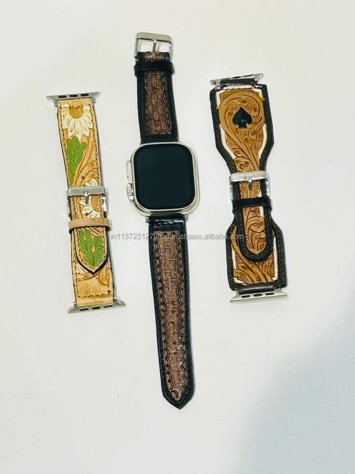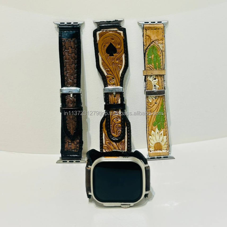 Stylish Vintage Tooled Leather Smart Watch Bands