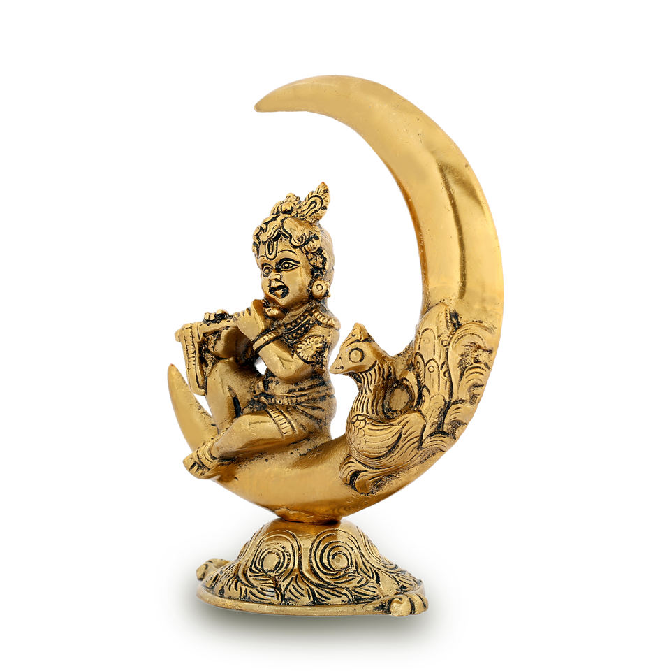 Nouvelle arrivée de Krishna en métal plaqué or fait à la main assis sur une Statue de conception à demi-hauteur pour la décoration et les cadeaux