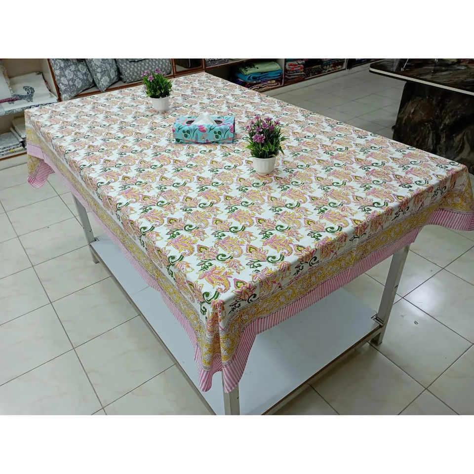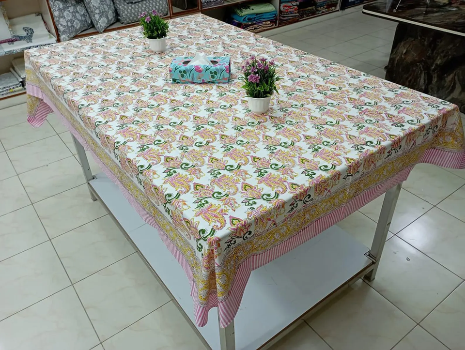 Nappe indienne imprimée en blocs faite à la main en coton floral, couverture de table à manger française classique pour la cuisine, nouveauté