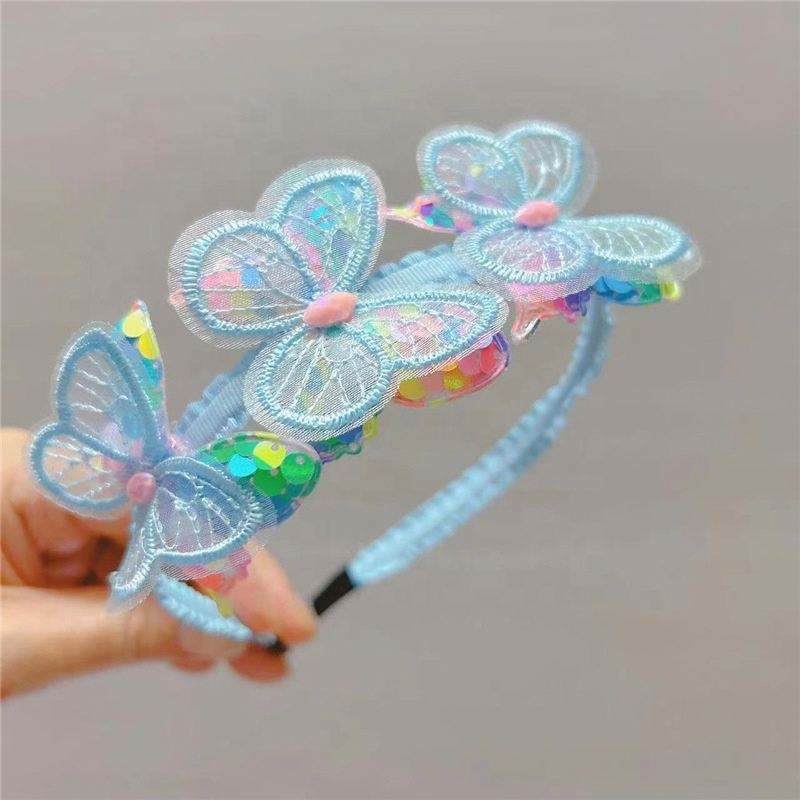 Nouveauté, bandeau pour cheveux gros papillons brodé à la mode pour enfants, fait à la main, pinces à cheveux douces pour filles