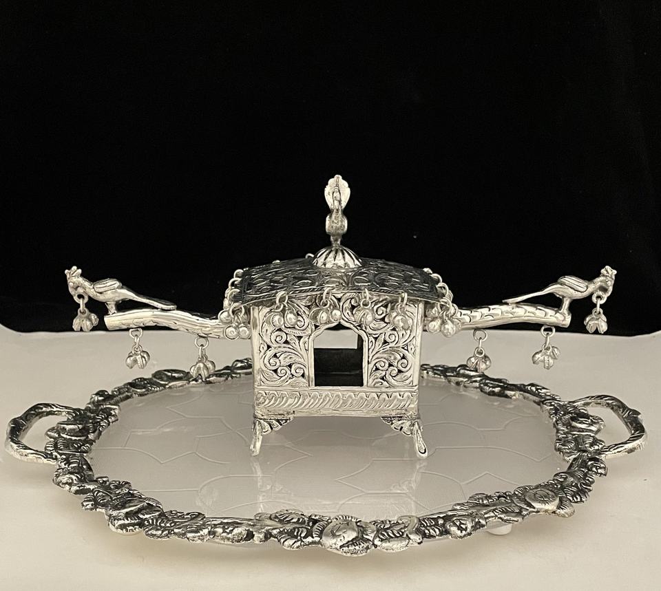 "SILVER OVAL TRAY AND PALKI DOLI SMALL"