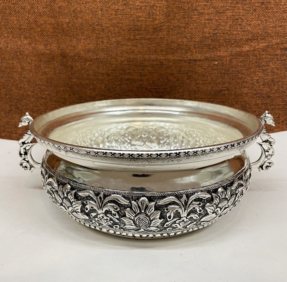 Nouveauté Bol Urli en cuivre plaqué argent fait à la main 10 pouces Artisanat indien Décoration d'intérieur Bol de centre de table