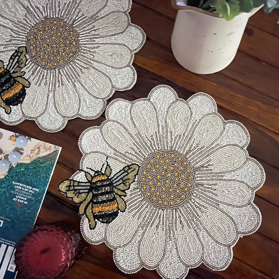 Nouvelle Arrivée Napperon Brodé à la Main avec Perles de 5mm, Diamètre 300mm, pour Événements Festifs, Maison, Motif Floral, Napperon de Table le Plus Vendu, Café