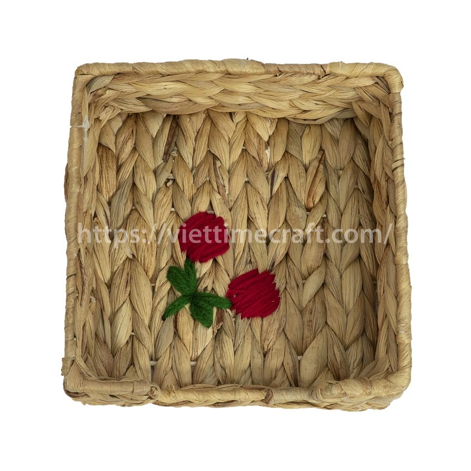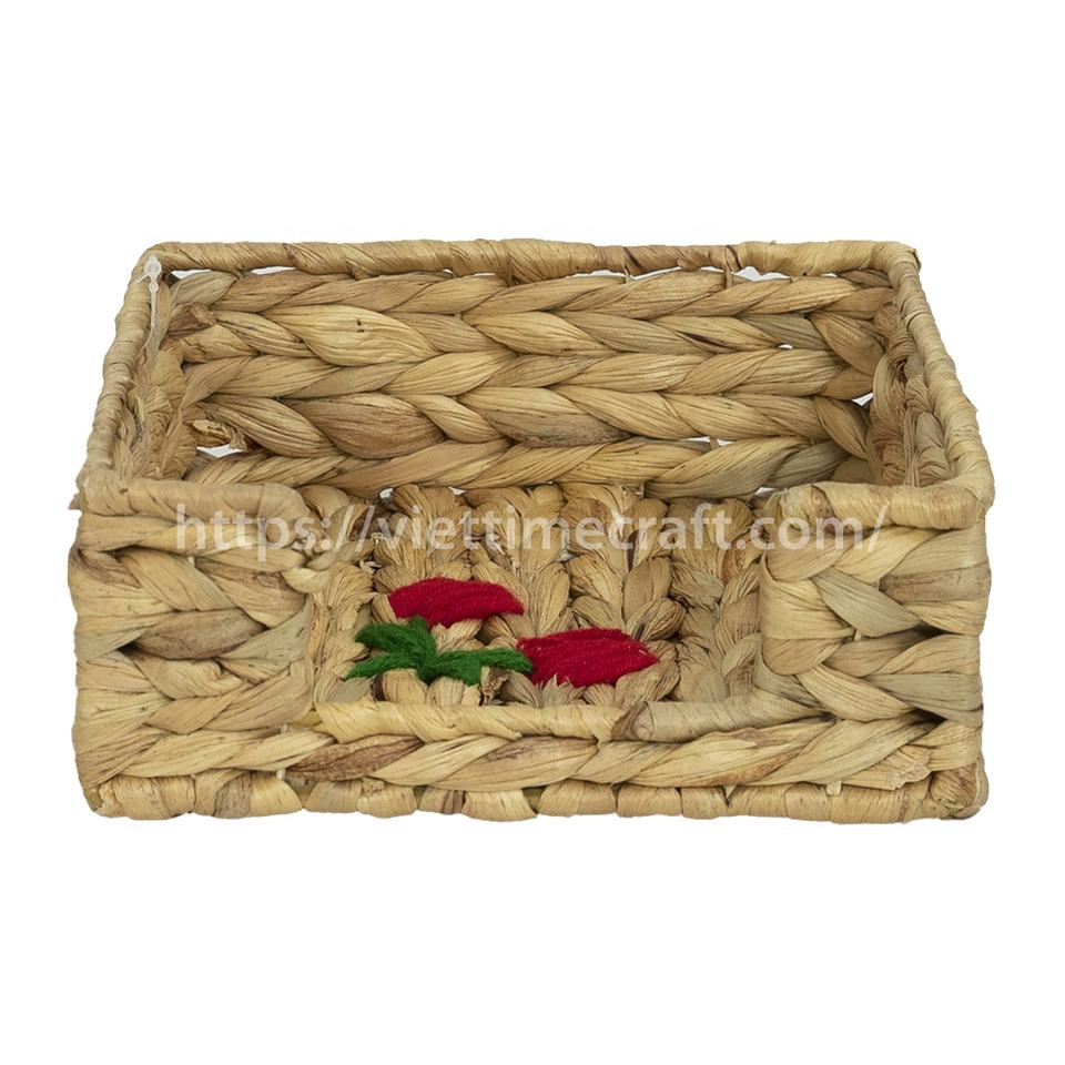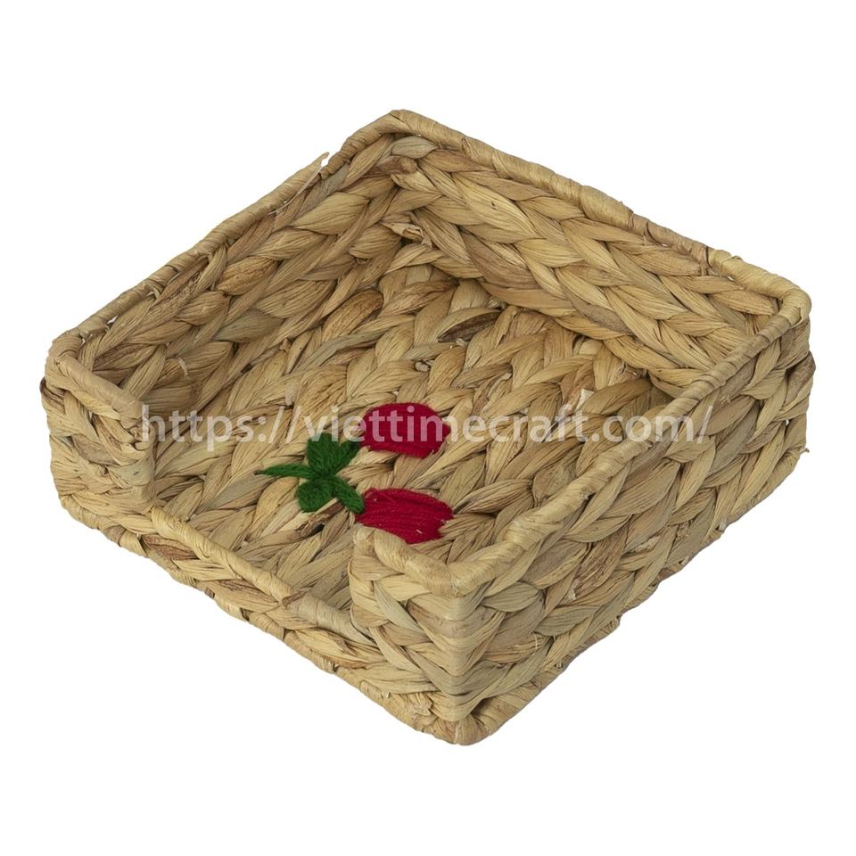 Nouvelle Arrivée Boîte à Mouchoirs Rectangulaire en Rotin Tressé Broderie Cerise Écologique Taille Personnalisée Ustensiles de Cuisine pour Table 1-3L