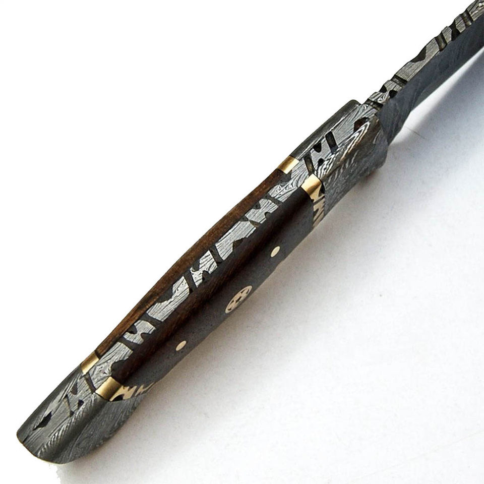 Nouvel Arrivage Couteau Pliant de Haute Qualité en Acier Damas Fait Main Personnalisé, Manche en Bois, Étui en Cuir, Lame Drop Point pour le Camping, ODM