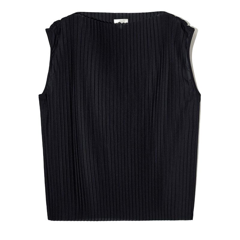 Nouveau produit Haut plissé personnalisé de haute qualité Haut à la mode sans manches col bateau haut pour femme
