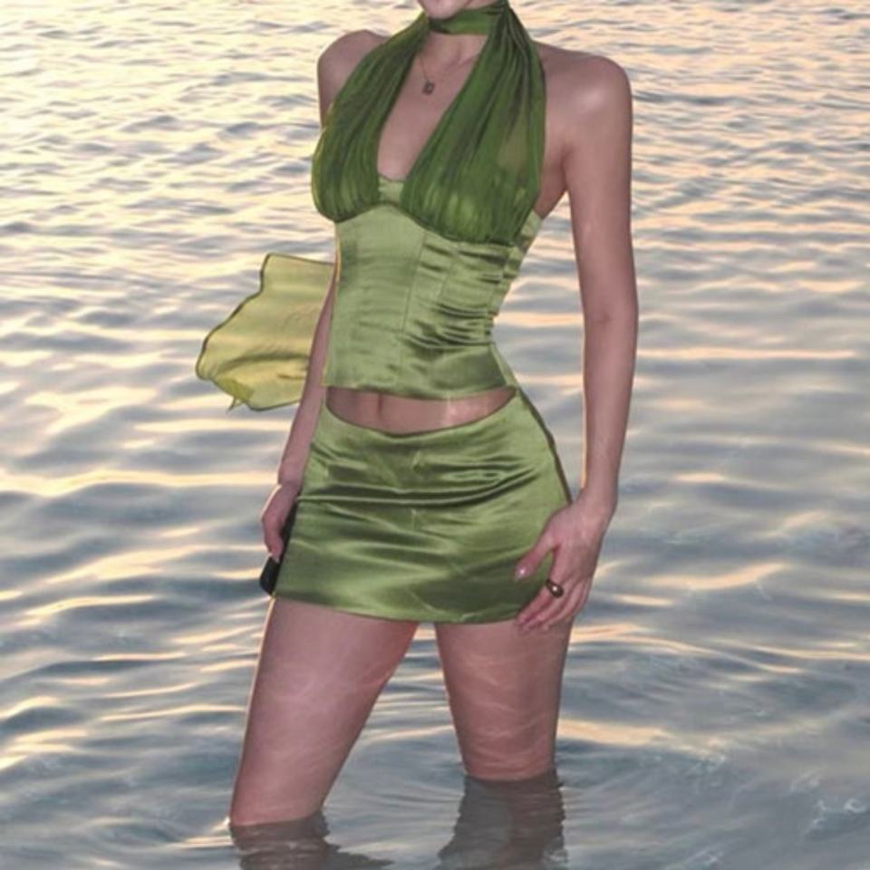 Nouvel Arrivage Ensemble Femme Vintage Personnalisé de Haute Qualité : Haut Halter Sans Manches et Jupe Courte Sexy à Taille Cintrée