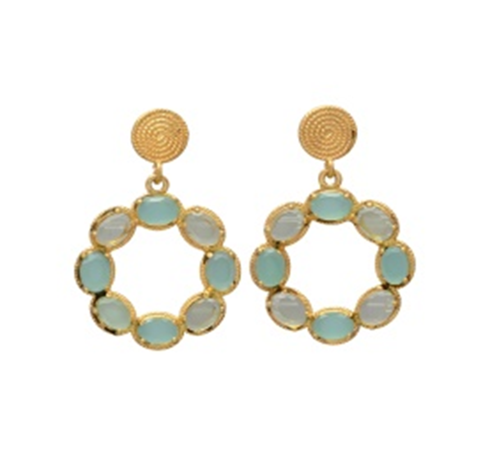 Nouvelle Arrivée Conception De Haute Qualité 14K 18K 24K Mat Plaqué Or Laiton Multistone Gemstone Boucles D'oreilles Pendantes