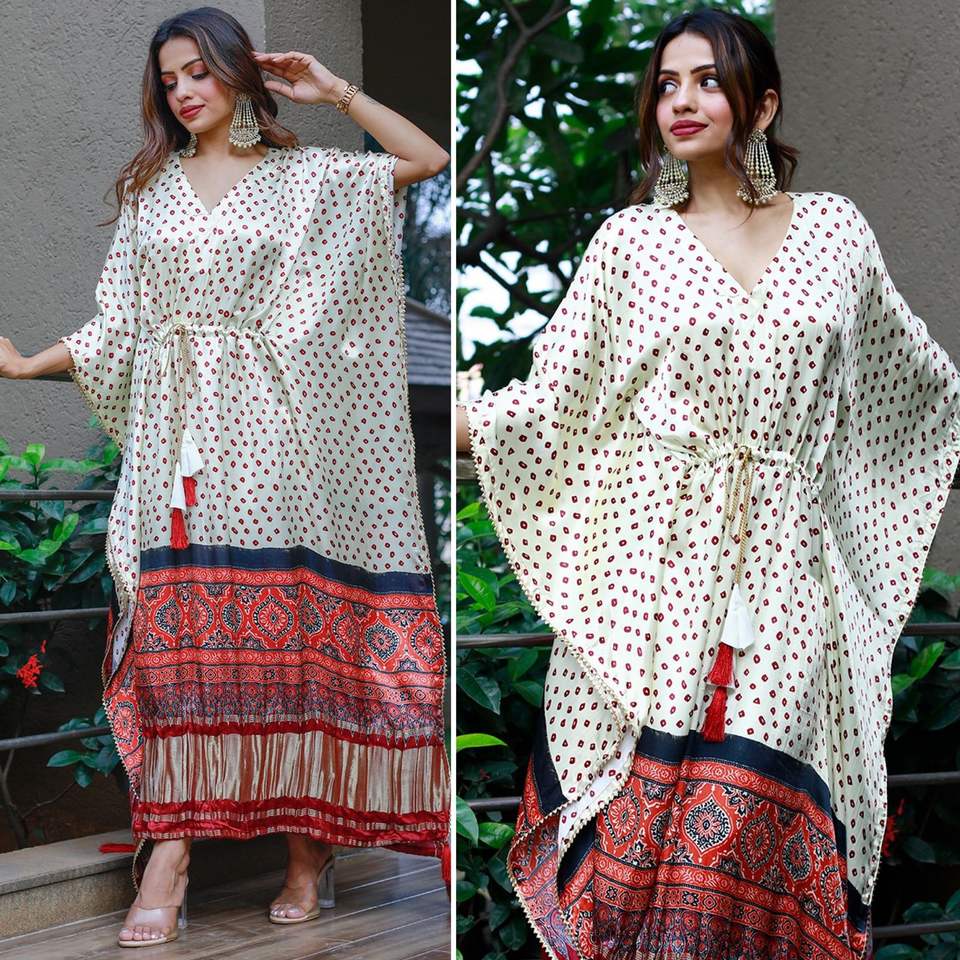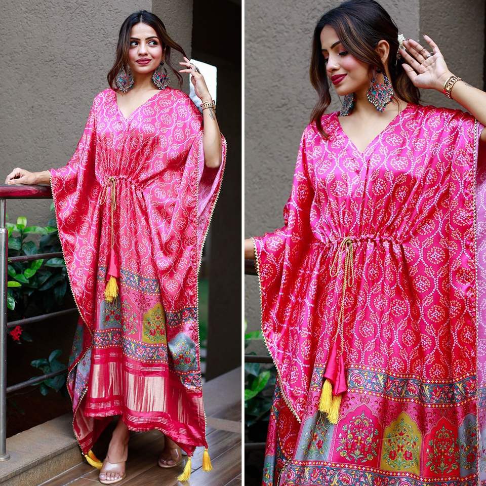 Nom du produit:Caftan en soie pure de Gaji avec imprimé numérique