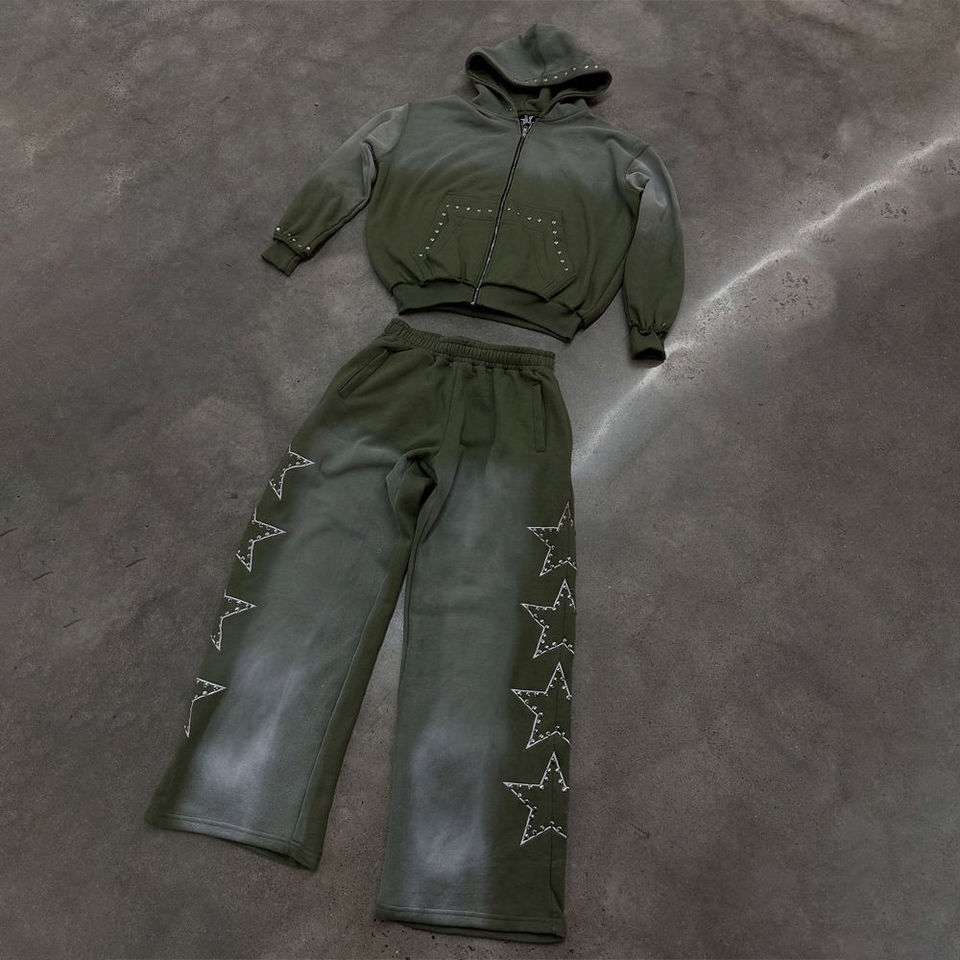 Nouvelle Arrivée Survêtements en Strass de Haute Qualité, Vêtements de Sport Noirs, Survêtements pour Femme Style Usé