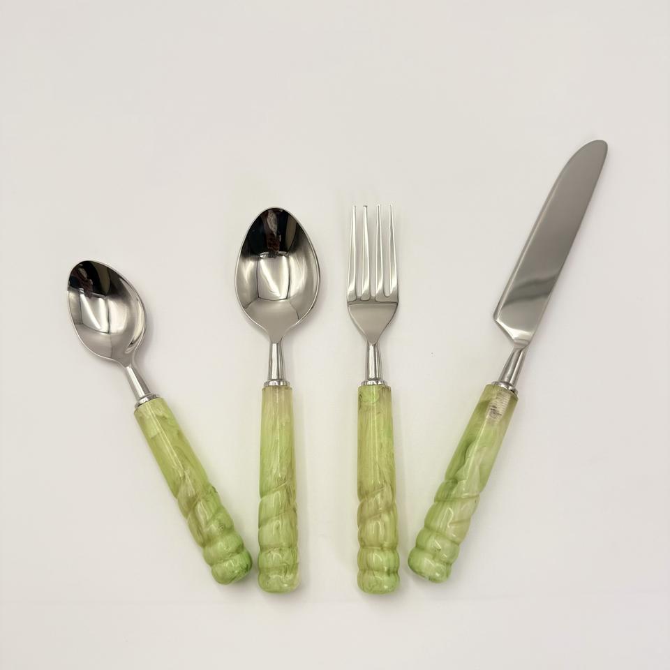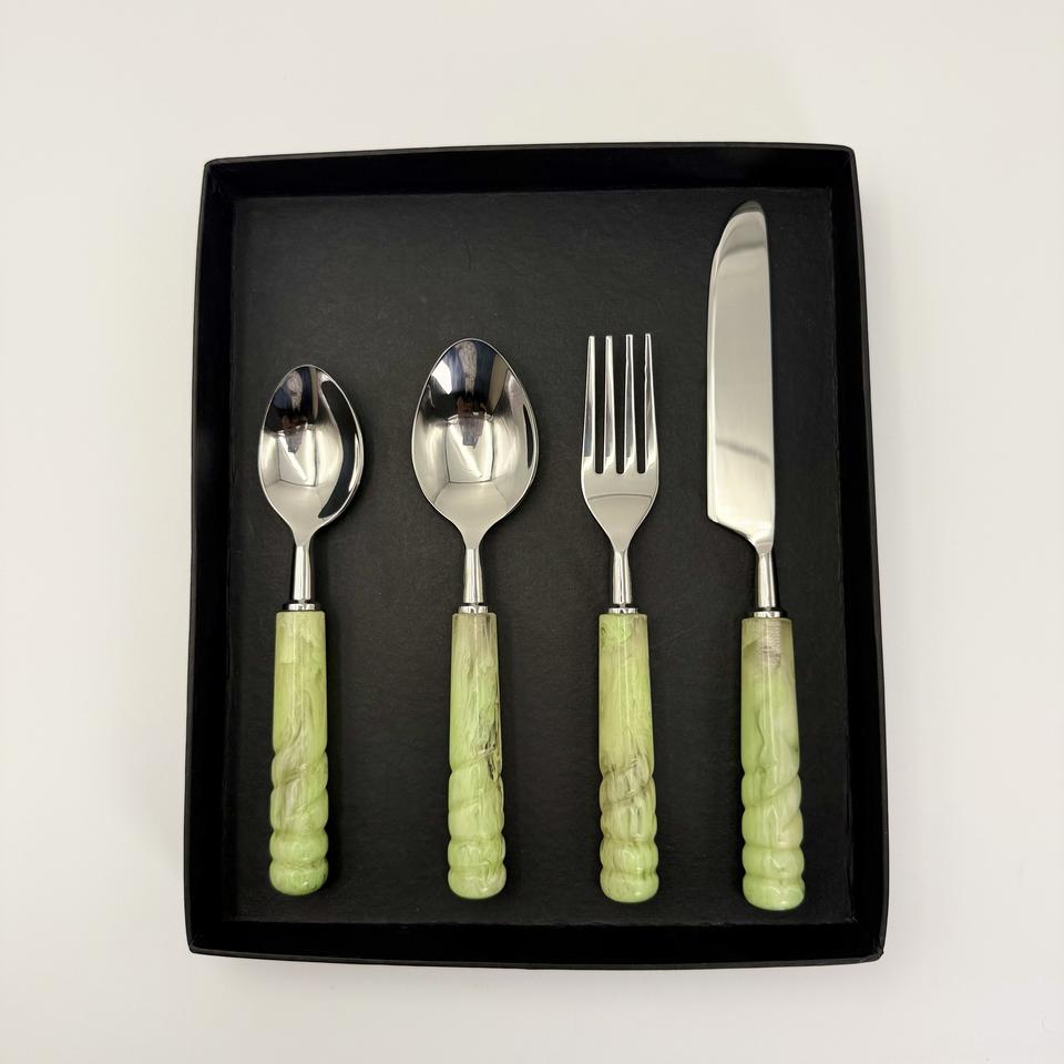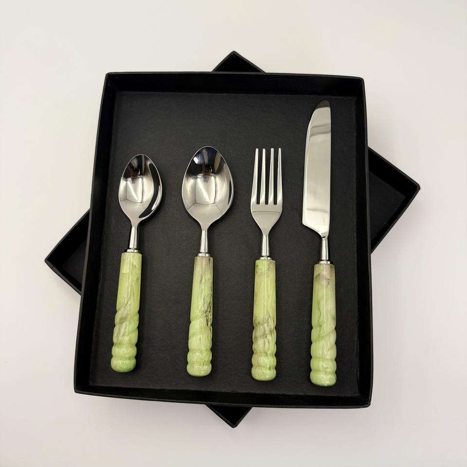 Nouvel arrivage : Ensemble de couverts en acier inoxydable de haute qualité, 4 pièces, avec manche en résine, finition miroir, pour la maison et l'hôtellerie