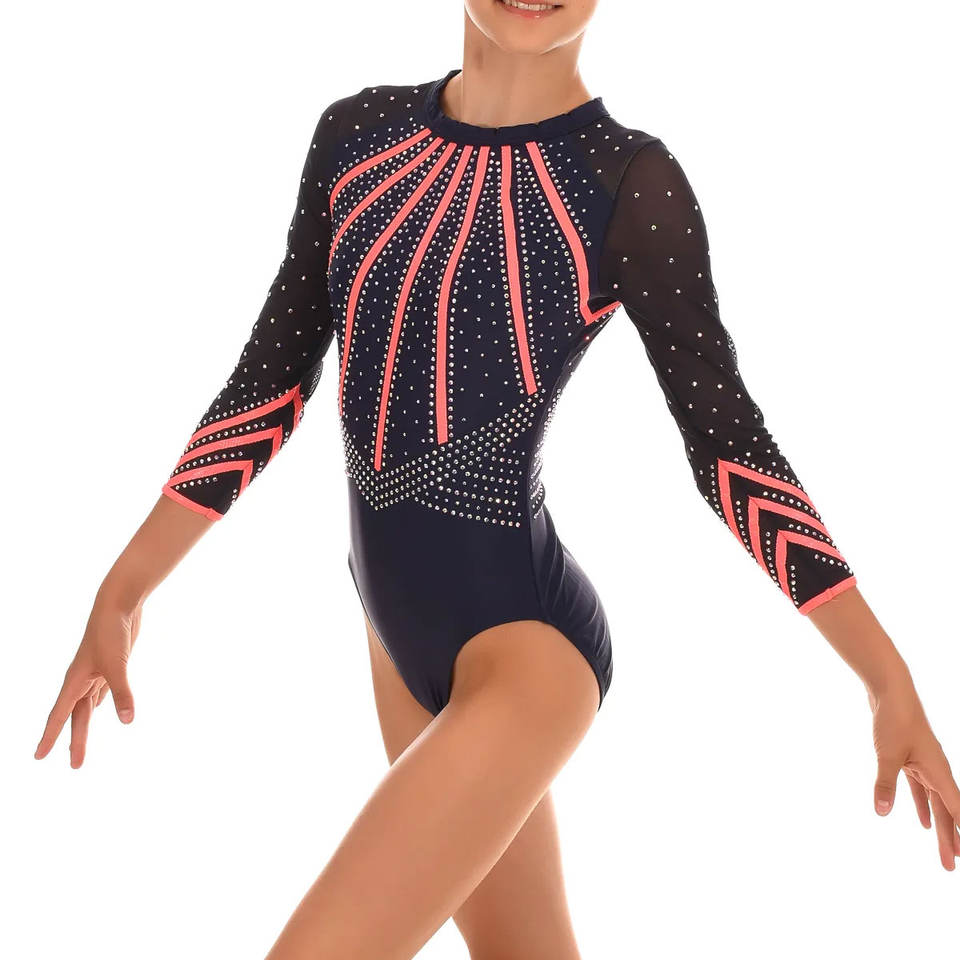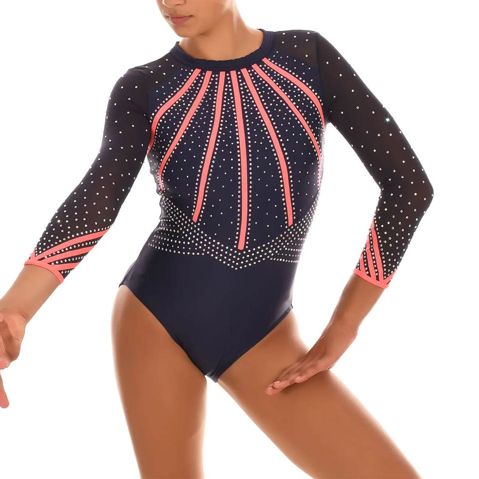 Nouvel arrivage Justaucorps de gymnastique de haute qualité pour filles Respirant à manches longues Justaucorps rythmiques en diamant