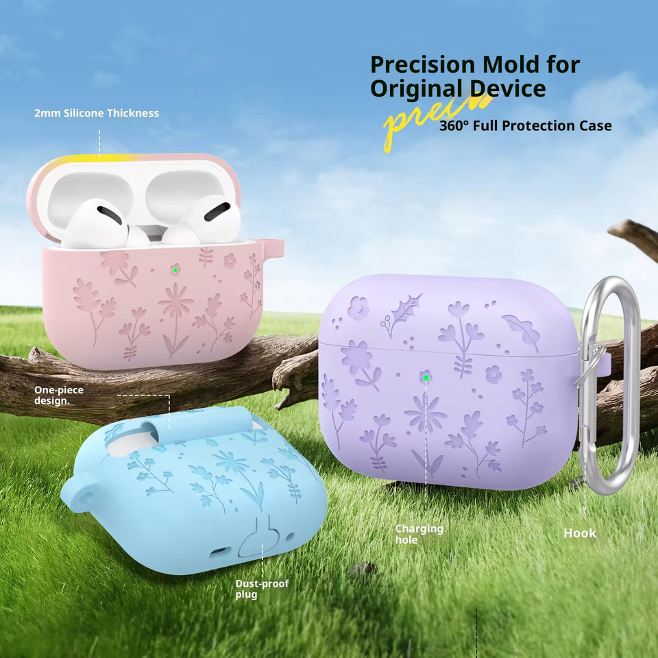 Nouvel Arrivage – Étui de Protection Antichoc en Silicone de Haute Qualité pour Écouteurs, Motif Floral Adorable, Couleurs Personnalisables, pour 4 2026