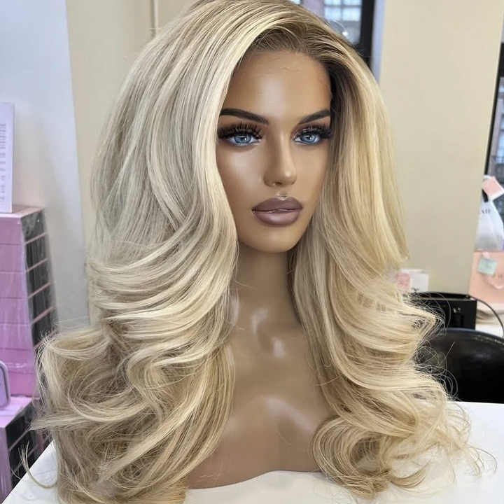 Nouveauté Perruque en dentelle HD transparente à la mode, couleur blonde cendrée, cheveux vierges européens, ton froid, pour femmes