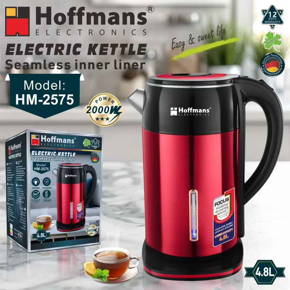 Nouvelle arrivée - Bouilloire électrique Hoffmans 4,8 L grande capacité, 2000 W, chauffe rapide, corps en acier inoxydable sans soudure