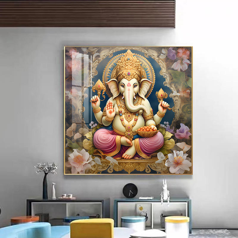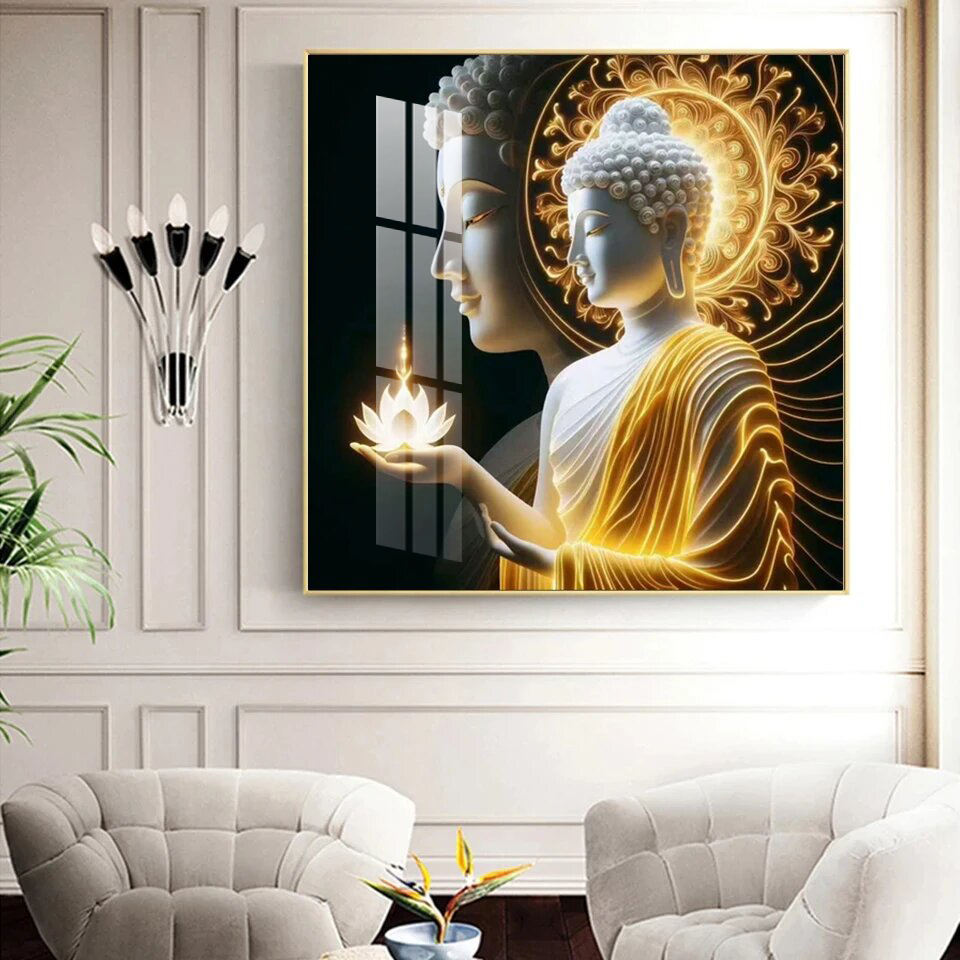 Nouvel arrivage de décoration intérieure de grande taille or bouddha fleur de lotus diamant religieux hindous dieu cristal porcelaine peinture art mural
