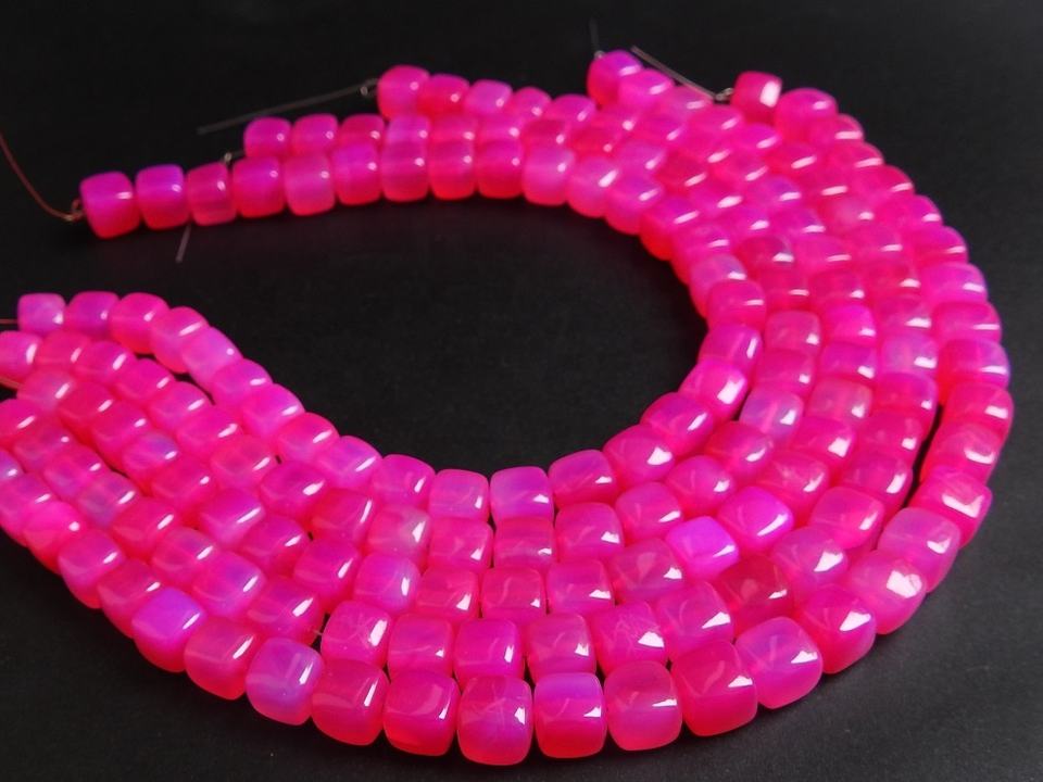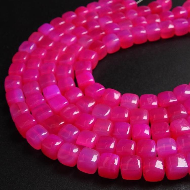 Nouveauté : Perles de chalcédoine rose vif, lisses et allongées, 6 mm, 9 pouces, pierres en vrac pour la fabrication de bijoux, prix de gros