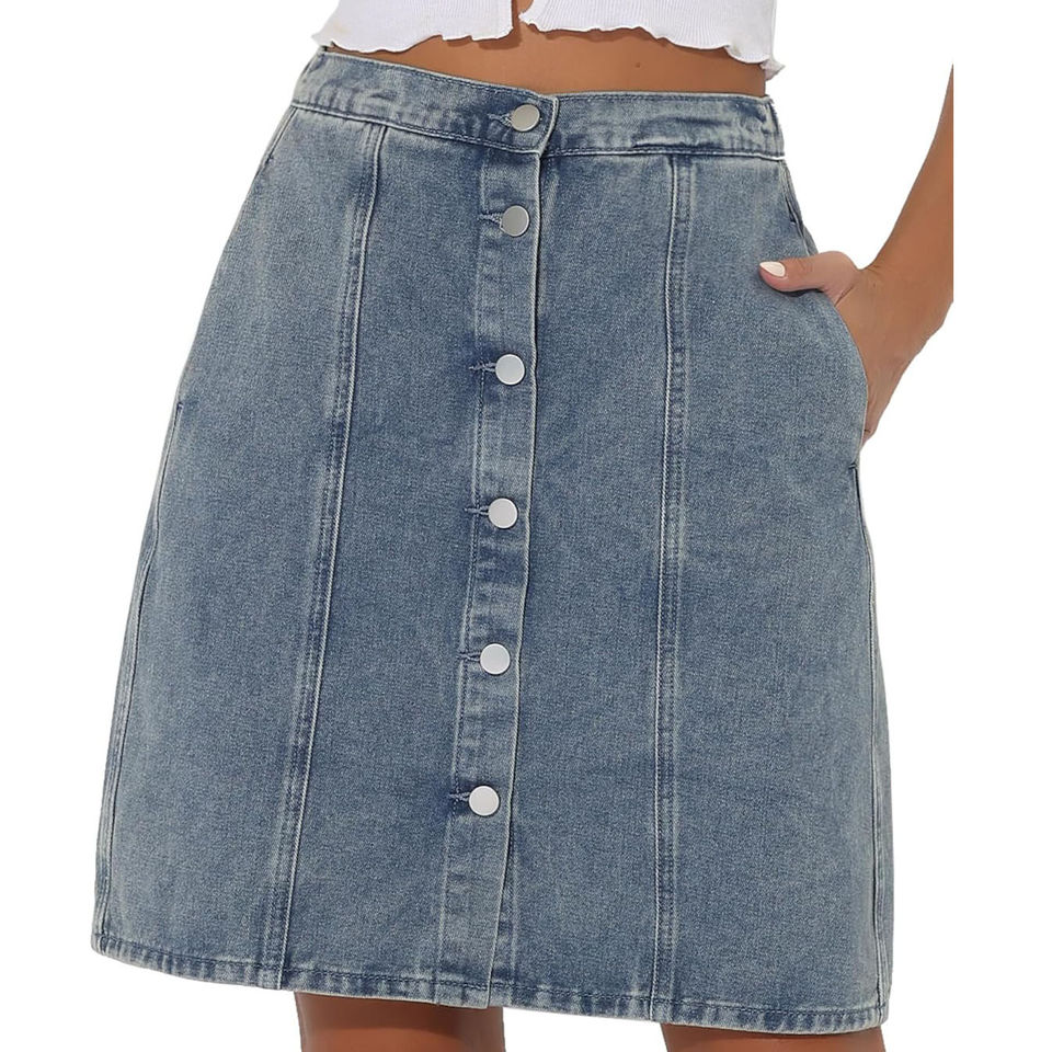 Nouvelle Arrivée Vente Chaude Jupe Courte en Jean Y2K Femme Taille Haute Coupe Trapèze Boutonnée Lavée 100% Coton pour l'Été