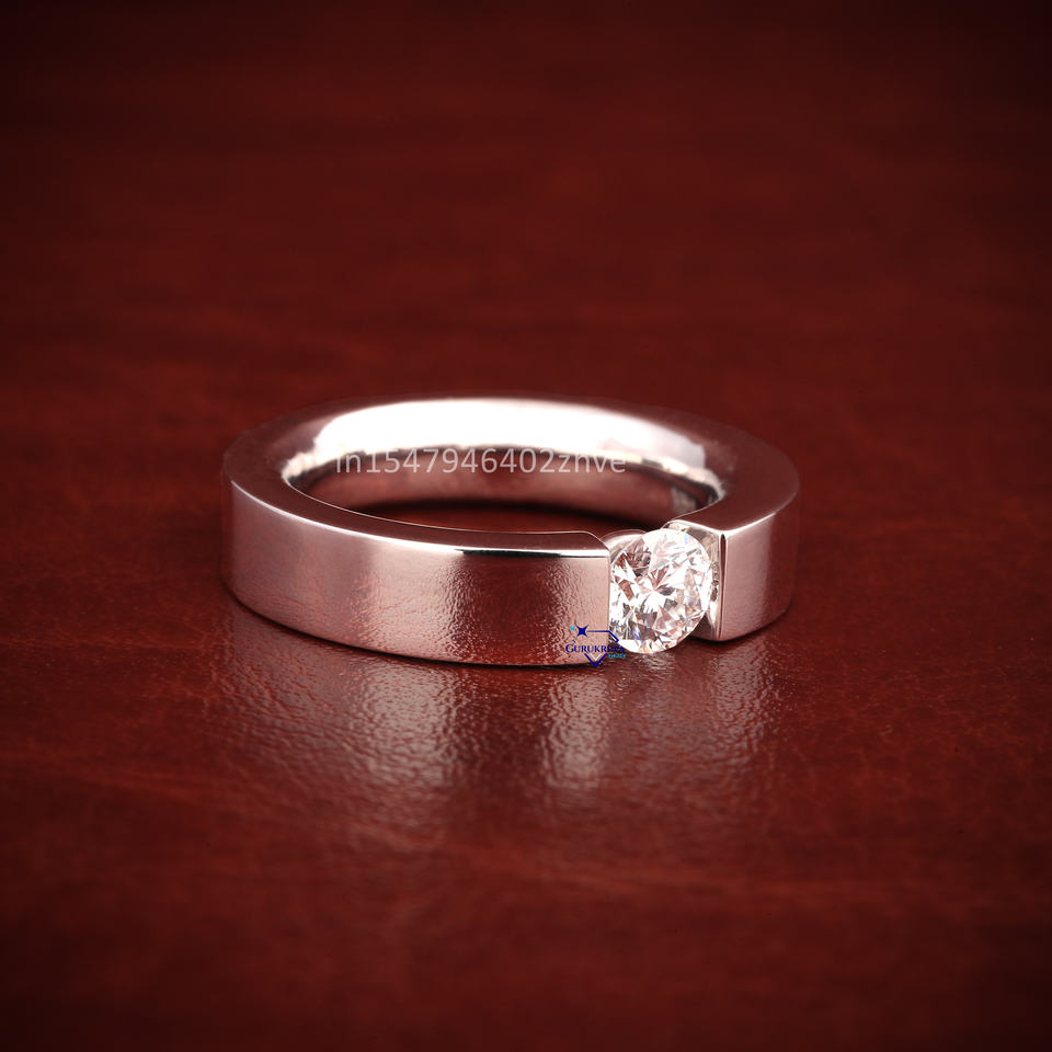 Nouvel Arrivage, Meilleure Vente : Bague de Mariage pour Homme en Or Blanc Massif 14 carats plaqué Rhodium avec Diamant de 0,45 carat, pour Fête
