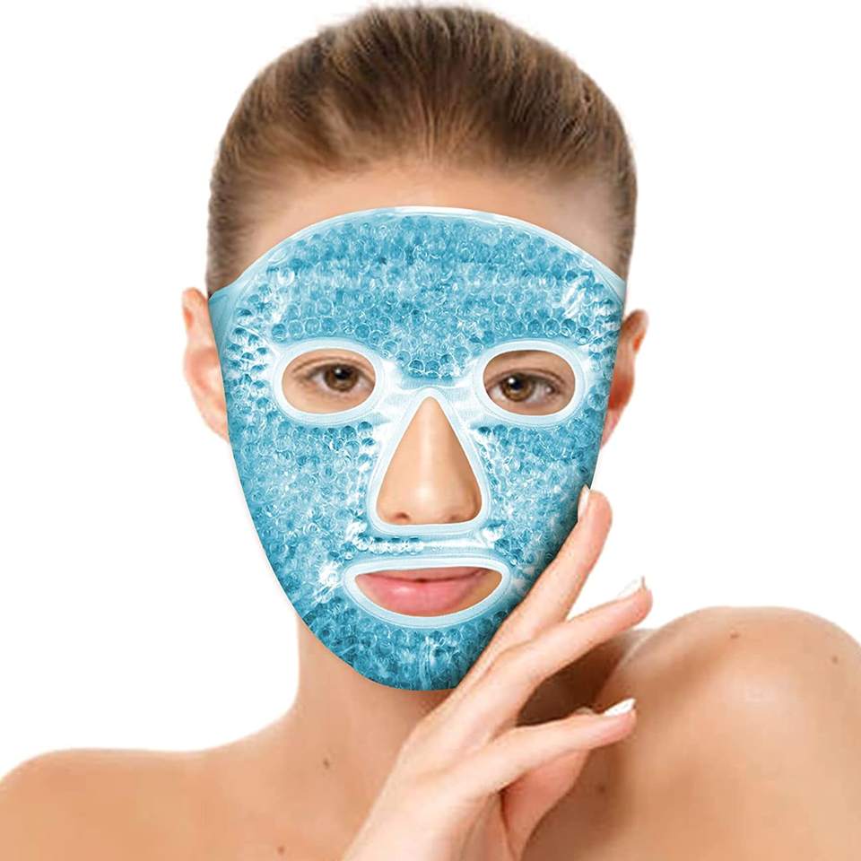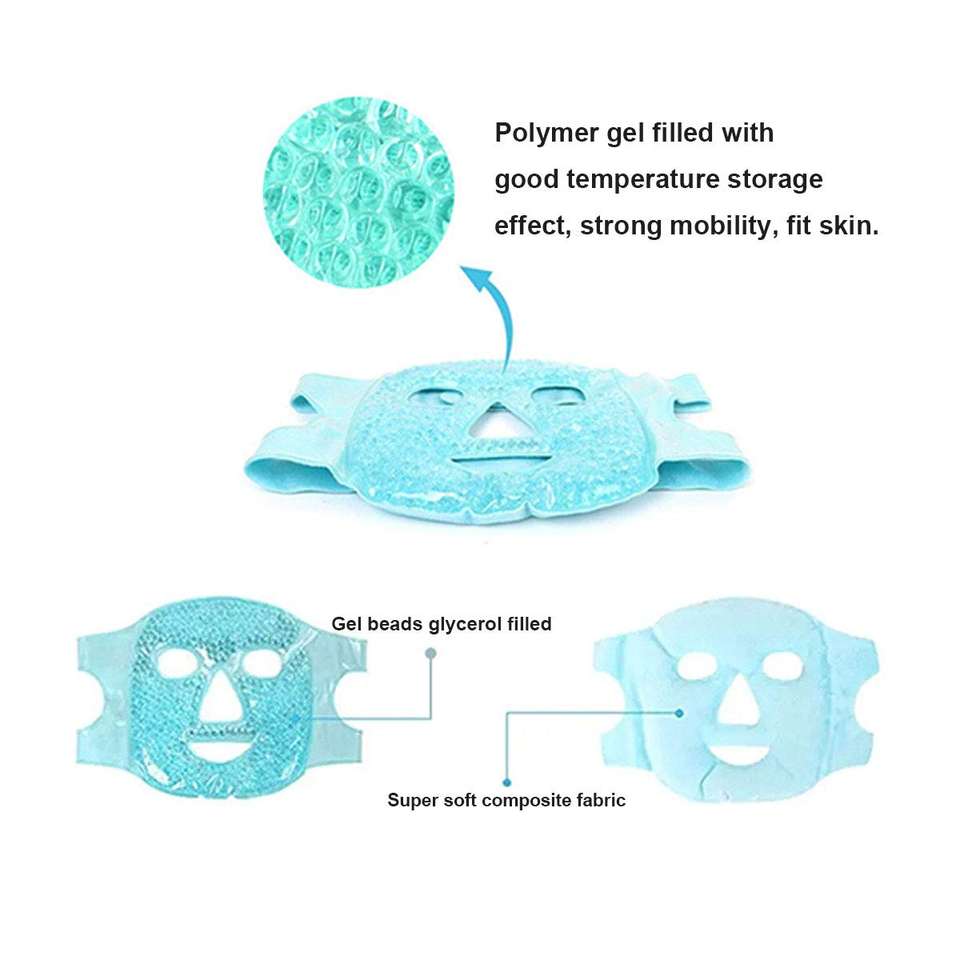 Nouvel arrivage de masque facial en gel pour la thérapie par le chaud et le froid Masque de glace en tissu gelable au micro-ondes Masque de visage en gel chaud et froid