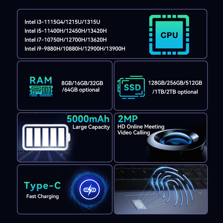 Nouveauté Ordinateur portable I7 Processeur I7 Carte graphique dédiée Ordinateur portable Windows 11 Port LAN RJ45 pour l'éducation/les affaires