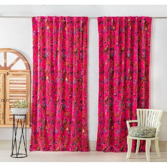 Rideaux imprimés floraux indiens faits à la main avec des fleurs colorées vives, ensemble de 2 panneaux pour salon, salle à manger, chambre à coucher, nouvelle collection