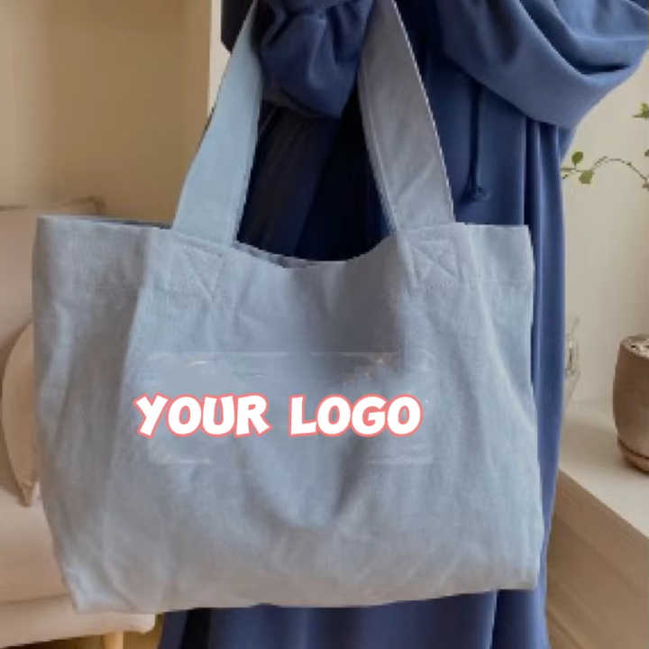Nouveauté Grand sac fourre-tout en toile de coton beige personnalisé avec logo imprimé Sac à bandoulière réutilisable pour le shopping et la promotion